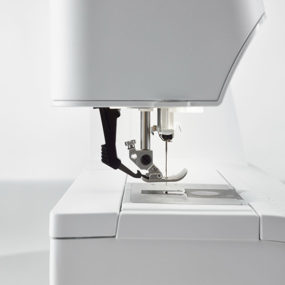 - Naaifuncties: automatische persvoetlifter, naaldstop omhoog/omlaag, start-stoptoets, herstart steek, onmiddellijk afhechten, draadafsnijder, snelheidsregeling.